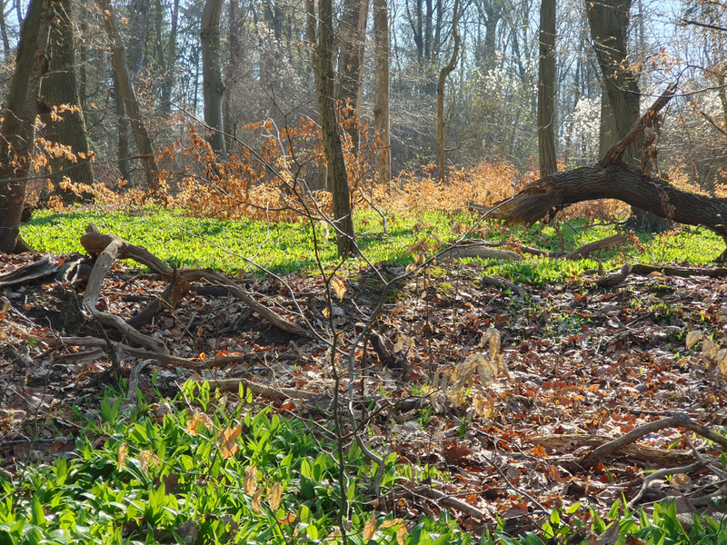 Nach Überqueren der Kuppe folgen wir dem Waldrand südwärts mit Ausblicken ins Land und Einblicken in den naturbelassenen, frühlingshaften Wald. Nach den mäandernden Waldpfaden kehren wir am Ende noch einmal auf schnurgerade Feldwege zurück, um unser Ziel Bornum zu erreichen.